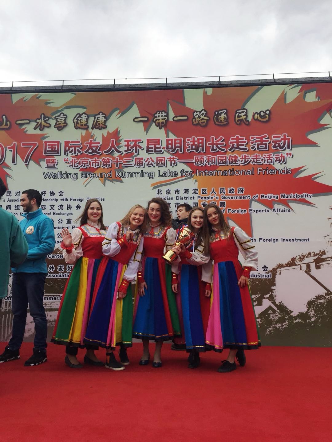 在活动开始,我校4名俄罗斯籍和1名乌克兰籍学生参加了开场演出,表演了优美动听的俄罗斯歌舞,受到了参加长走活动的国际友人热烈欢迎,掀起了出发前的小高潮。参加长走的国际学生全部走完8公里行程,在体育锻炼中融入大自然,享受人与自然和谐之美,愉悦身心。