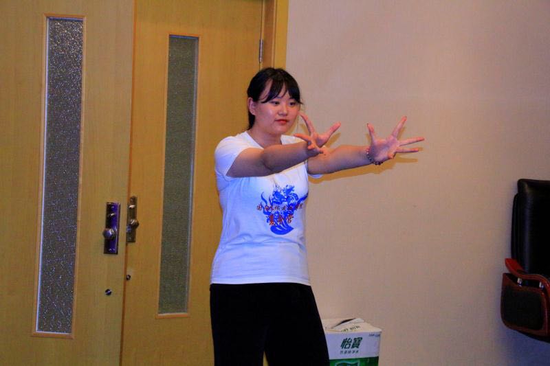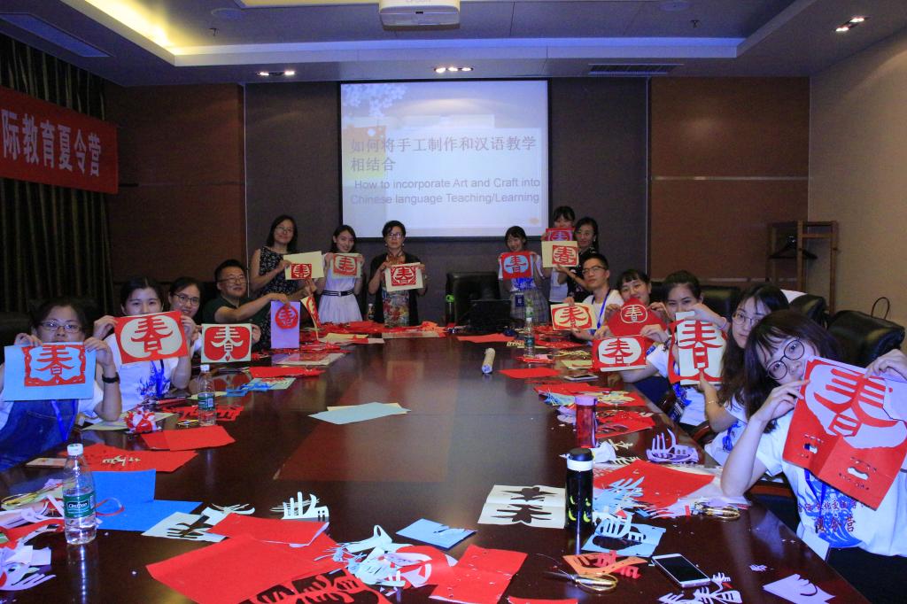 (原绍锋教授为大家讲授剪纸艺术与汉语教学相结合)