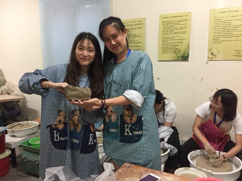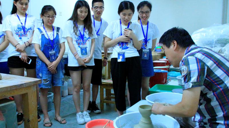 (营员们在我校陶艺工作室学习体验陶艺文化)