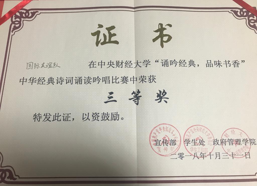 永利官网留学生在“诵吟经典·品味书香”诵读吟唱比赛中斩获佳绩
