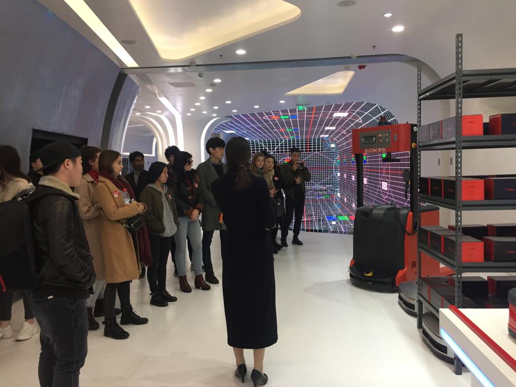 作为一家大型的电商企业,留学生们对京东充满了兴趣和好奇。通过此次参观,同学们对京东商城、京东金融和京东物流有了深入的了解,对于京东在商业领域一次又一次的突破创新,取得的跨越式发展,尤其是高新技术的运用倍感惊奇和赞叹。有的同学说:“参观后,感受到了技术的发展与网上购物的未来,毕业后,我要争取把这些引进到我的国家。”有的同学说:“参观后脑子里唯一想的就是在这个机器化的时代,毕业后找到工作可能会更加不容易了”。对此,老师鼓励同学们努力学习,积极进取,跟上时代发展的步伐,让知识引领未来。