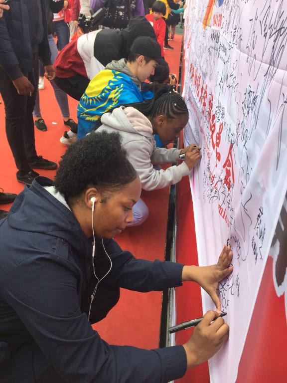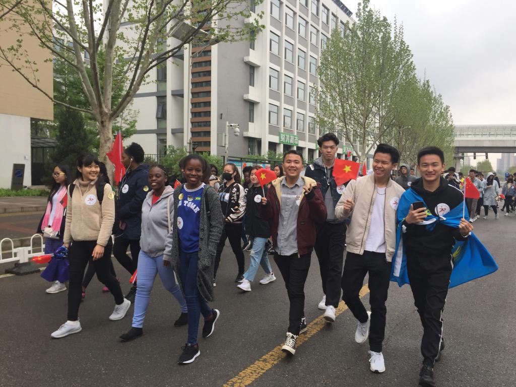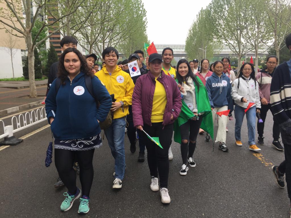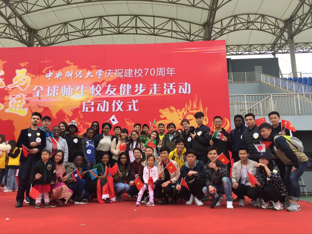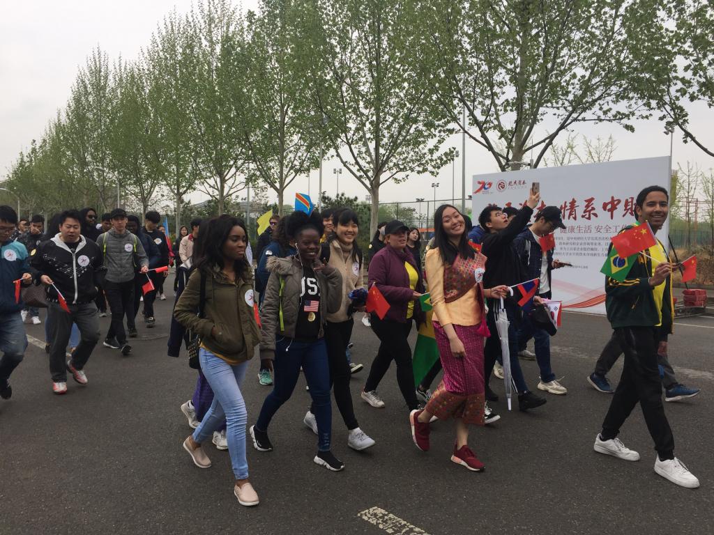 作为七十周年校庆活动之一的“龙马奋进”77779193永利官网全球师生校友健步走活动4月20日在沙河校区举行。永利官网四十二名国际学生与一千余名中财大师生校友一起参加了此次活动。