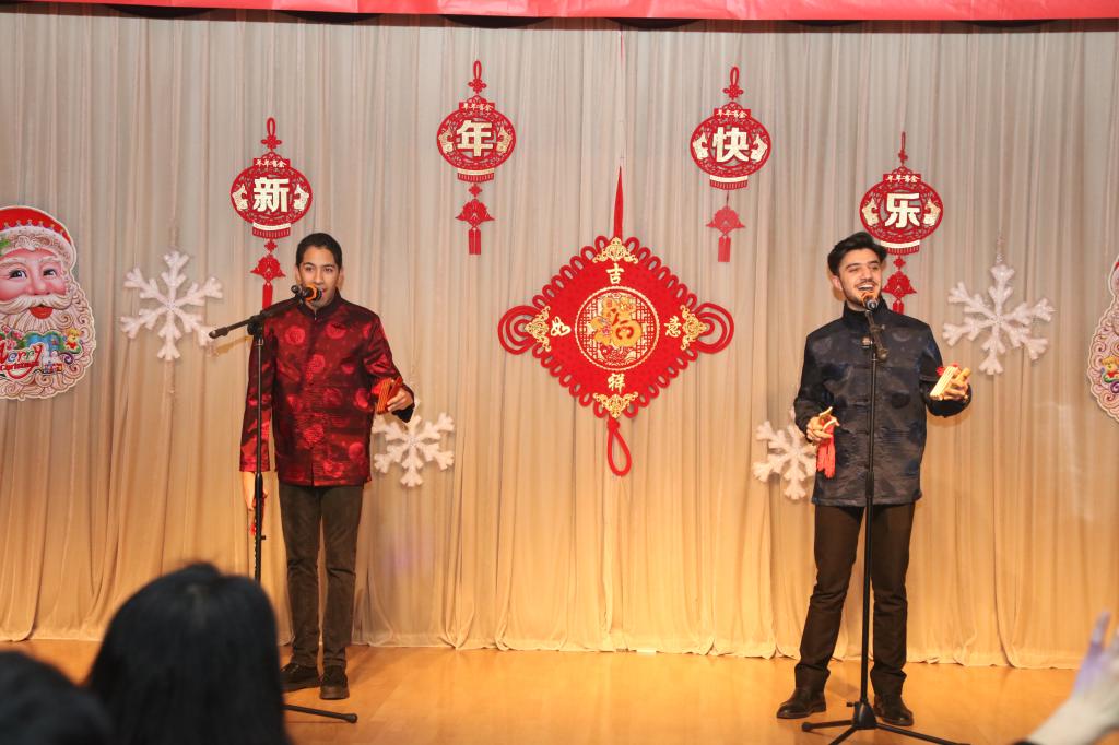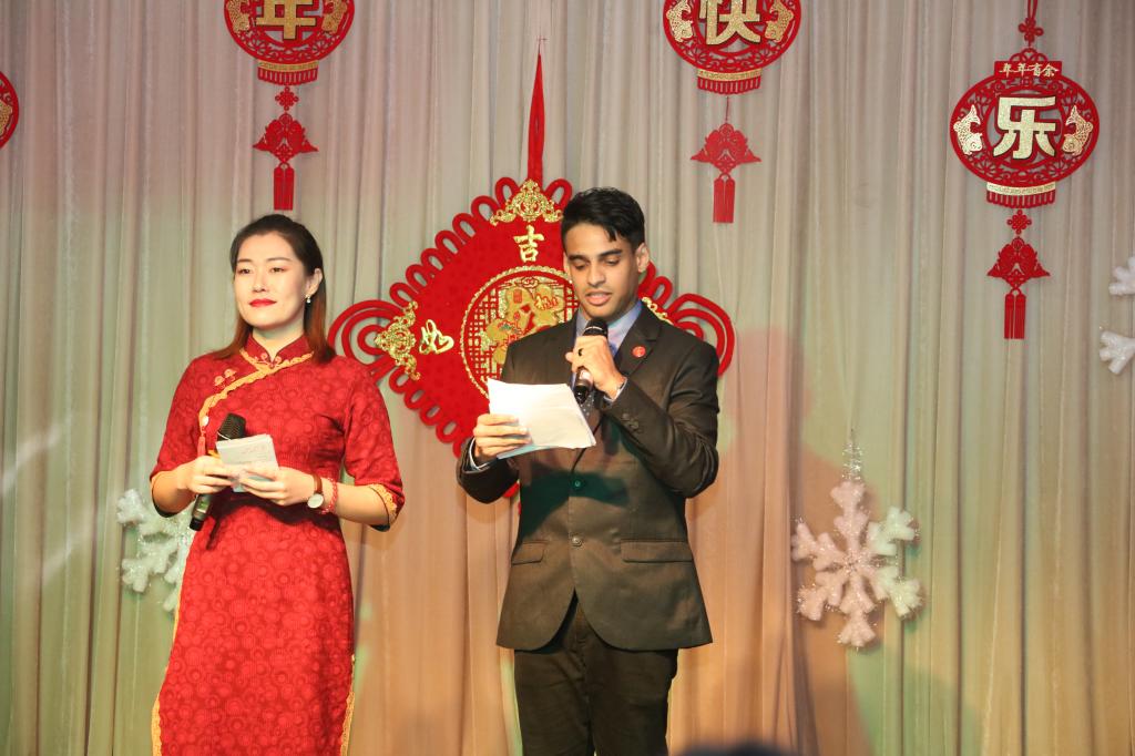联欢会在巴西同学永思源、阿富汗同学哈帅表演的快板《留学生活赞》和歌舞《大中国》的乐曲中结束,红红的绸子,欢快的腰鼓,舞出了留学生们的中国情,敲出了大家对新的一年的美好祝愿。同学们纷纷表示,这是一次难忘的辞旧迎新,会把这场联欢会永远留在记忆深处。