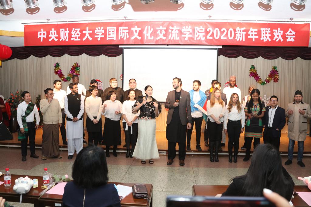 联欢会在欢快的音乐声音中开始,李春玲院长发表了热情洋溢的讲话。她首先回顾了2019年学院取得的五大收获,主要包括留学生和教师人数的大幅增加,汉语国际教育硕士、汉语+、预科点的设立等;李院长向关心和支持留学生工作的学校领导、相关职能部门、培养单位和全院师生表示衷心地感谢并致以节日的问候,对在2019年获奖的留学生进行了表彰。