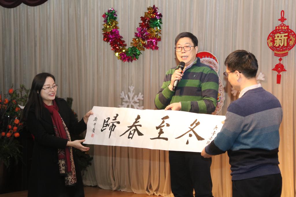 周卫中教授也向大家祝贺新年,并向学院赠送了自己的书法作品。