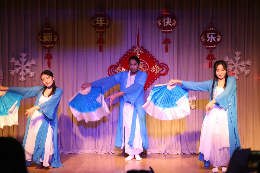 来自秘鲁的同学们首先登场,他们以一段具有南美风情的舞蹈拉开了联欢会的序幕;