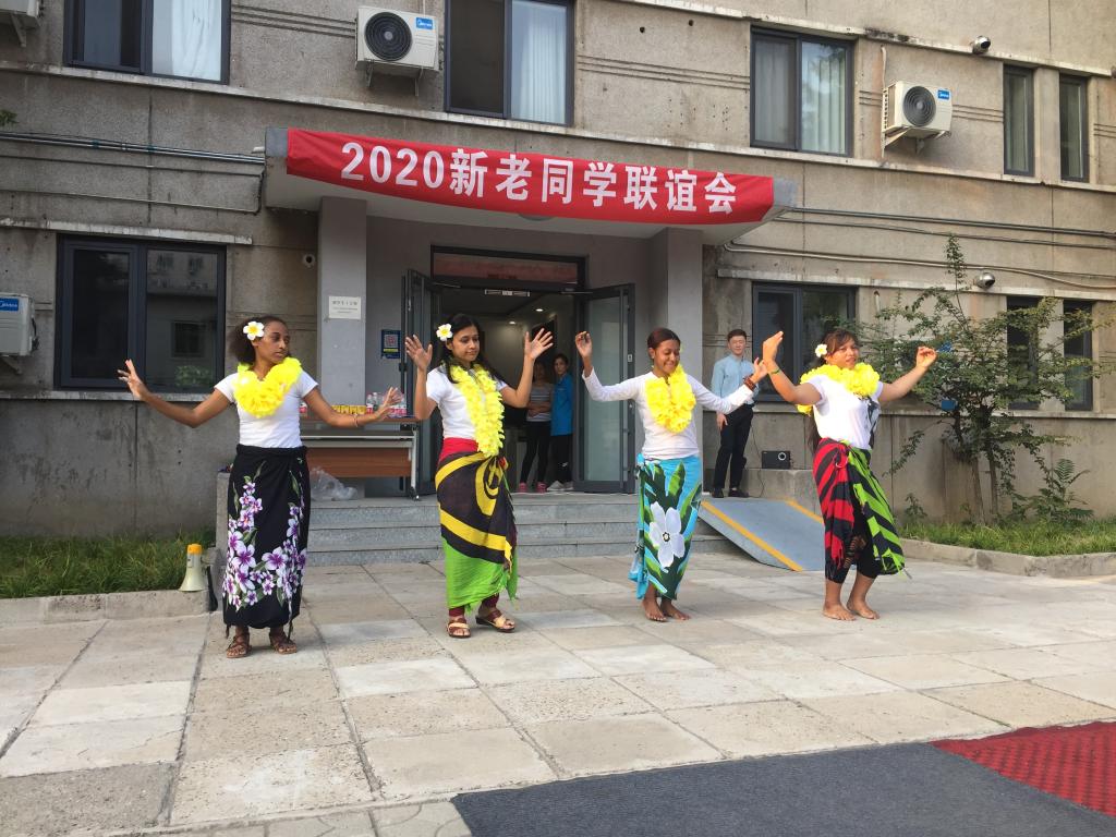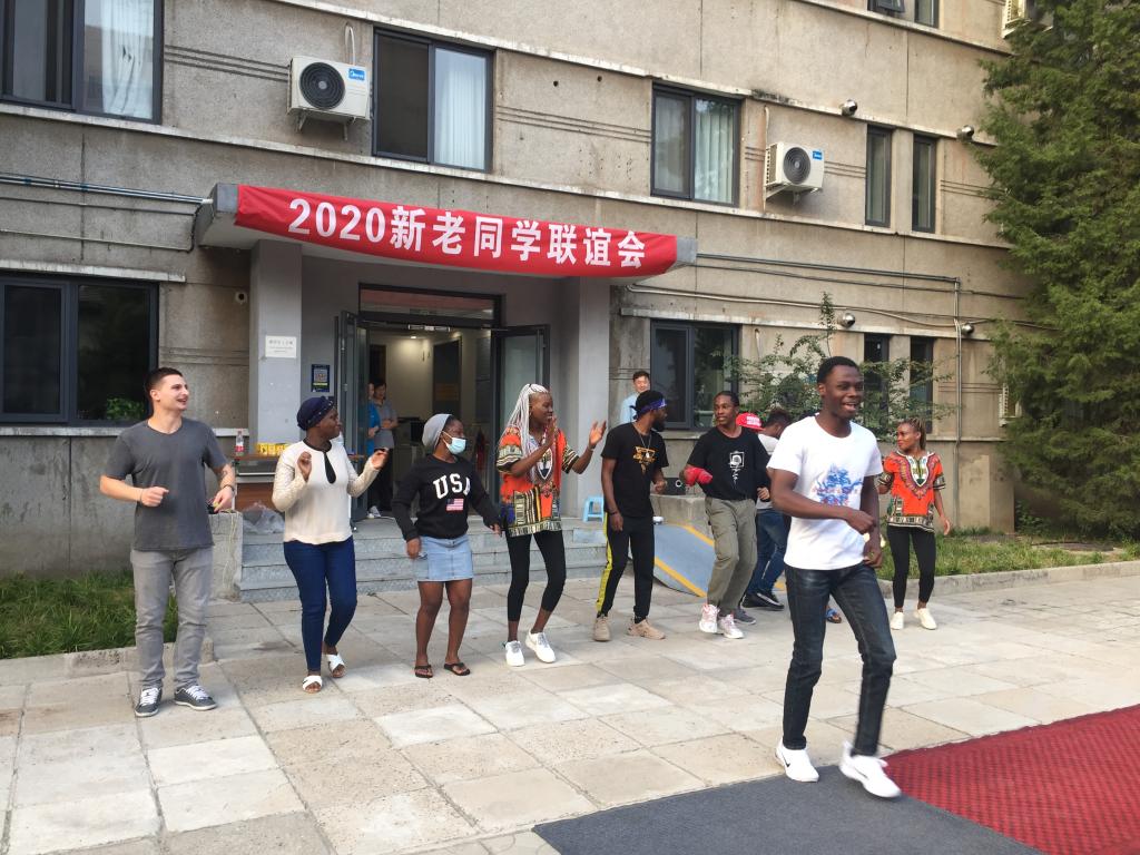 9月26日下午,为欢迎新同学,留学生工作办公室在留学生一公寓门前小广场举办了“2020新老同学联谊会”。联谊会上,2020级在校的新同学首先做了自我介绍,高年级班级代表对新同学表示了欢迎。随后,新老生通过歌舞、小游戏等形式进行了联欢。