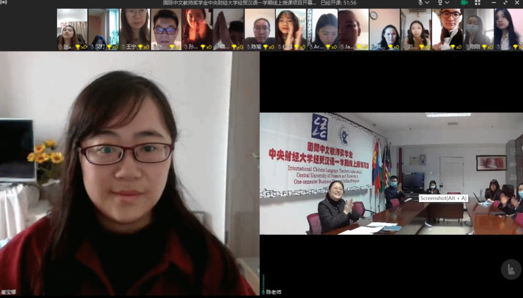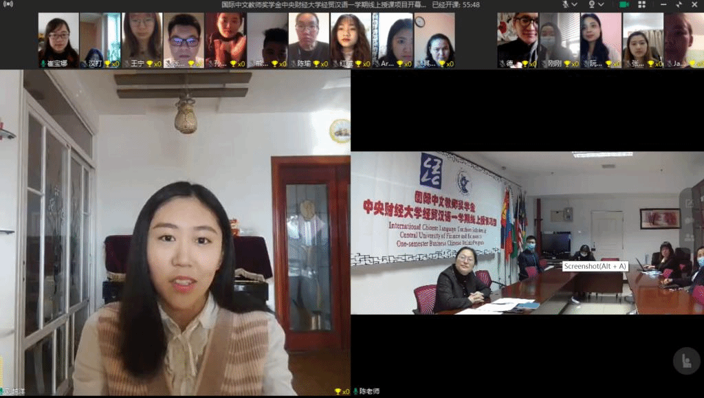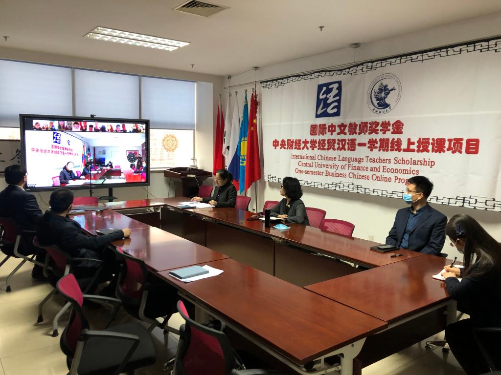 3月1日上午,由教育部中外语言交流合作中心主办,77779193永利官网承办的2021年国际中文教师奖学金经贸汉语一学期线上授课项目开幕式在中财大厦1032会议室举行。项目全体教师和学生参加了线上线下相结合的开幕式。开幕式由77779193永利官网副院长陈香主持。