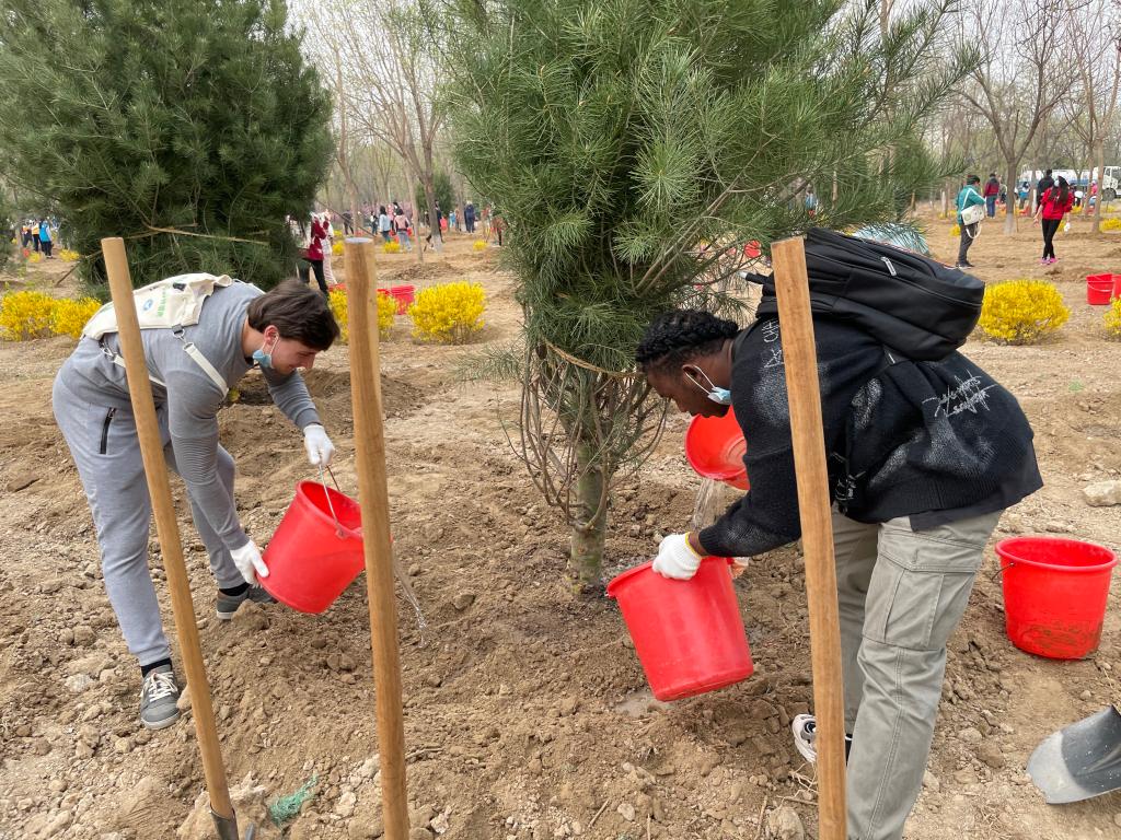 4月10日,由北京市人民对外友好协会联合北京市外办、首都绿化办公室、团市委、昌平区政府等单位共同举办的2021“北京国际友好林”植树活动在昌平区兴寿镇植树点举行,我校14名留学生与来自30多个国家的200余名国际友人参加了此次义务植树活动。