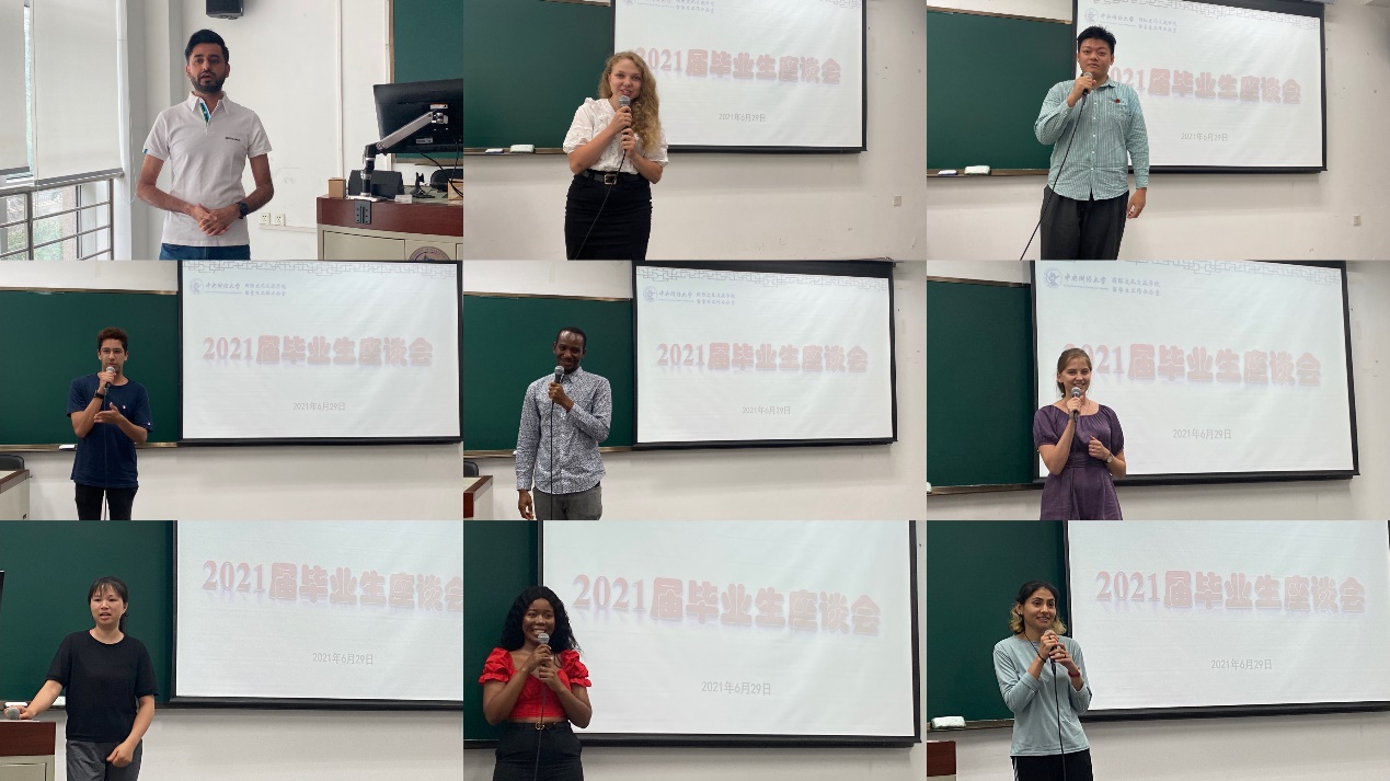 国际学生纷纷向母校和老师们表示感谢,有的同学在回忆师生情、同学情时,禁不住流下了激动的泪水。座谈会在温馨的氛围中结束。