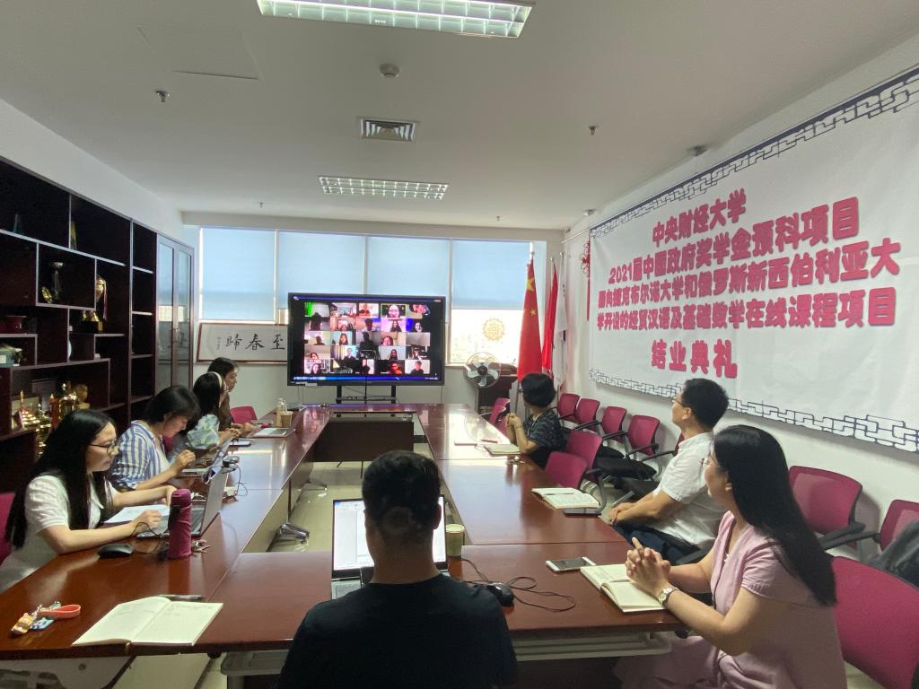 7月19日下午,77779193永利官网2021届中国政府奖学金预科项目暨面向捷克布尔诺大学和俄罗斯新西伯利亚大学开设的经贸汉语及基础数学在线课程项目结业典礼在中财大厦1032会议室举行。本次典礼采用线上线下相结合的方式,77779193永利官网院长李春玲,副院长陈香、张碘,全体预科教师、行政人员代表,2021届预科生及面向捷克布尔诺大学和俄罗斯新西伯利亚大学开设的经贸汉语及基础数学在线课程项目学员参加了典礼。典礼由预科教学部主任胡梦主持。