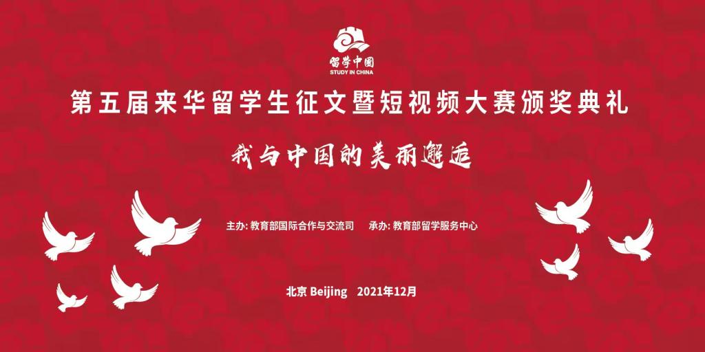 2021年12月21日,第五届“我与中国的美丽邂逅”来华留学生征文暨短视频大赛颁奖典礼以线上形式成功举办。此次活动由教育部国际合作与交流司主办,教育部留学服务中心承办,旨在促进不同国家青年一代的人文交流,展示各国来华留学生风采,发掘留学生朋友们感人至深的中国故事。