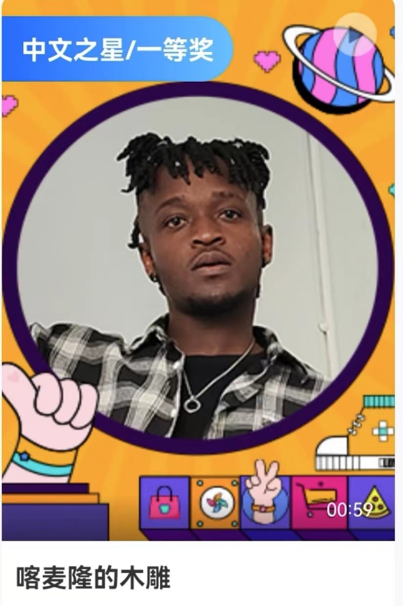 由教育部中外语言交流合作中心主办的汉语桥“一分钟 中国行”系列活动第三期“一分钟 谁是‘带货王’”创意视频征集评比活动4月6日圆满结束,我校文化与传媒学院2021级喀麦隆籍留学生沙力的参赛作品《喀麦隆的木雕》荣获一等奖并获得“中文之星”称号。