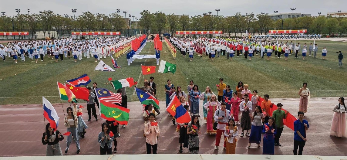 4月21日上午,我校2023年春季运动会开幕式在沙河校区运动场举行。来自12个国家的44名国际学生欢聚一堂,组成国际学生方阵参加了本次开幕式。