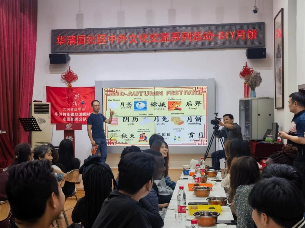 活动伊始,国际学生认真聆听华清园社区志愿者讲解中秋节的来历和传统民间故事,积极参与中国传统文化知识小问答。