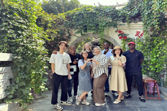 留学生们在三河古镇合影