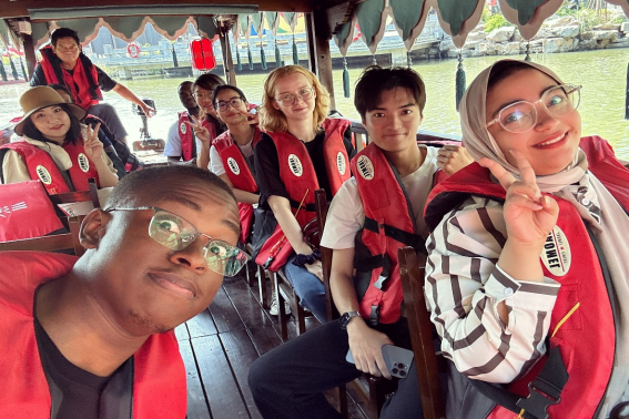 留学生们在三河古镇坐船游览