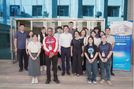陈斌开副校长与报到工作人员、国际学生志愿者合影