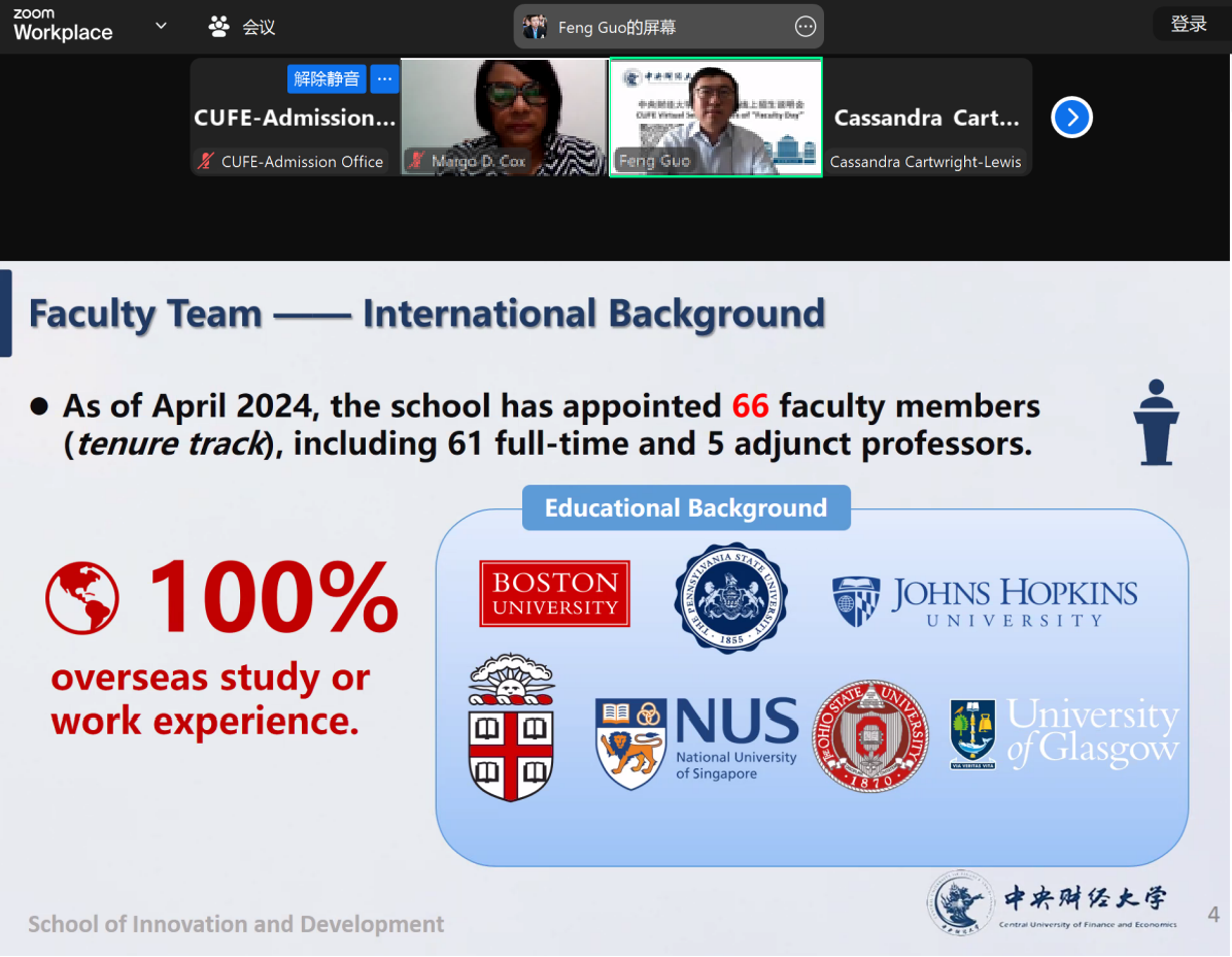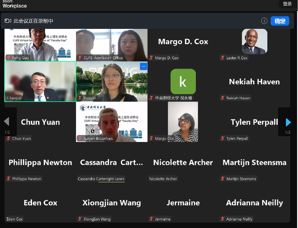 为落实习近平总书记关于“要打造更具国际竞争力的来华留学教育”的重要指示,5月21日上午,留学生工作办公室联合创新发展学院为巴哈马本地高二和高三学生带来了一场精心准备的线上招生宣讲会,隆重推出我校第一个金融学本科全英文项目。创新发展学院党委常务副书记李汉军、常务副院长袁淳、副院长汪雄剑、副教授郭枫、77779193永利官网留学生招生办公室钱明才、李恬祎等参加会议。巴哈马驻华大使馆一等秘书Lester R Cox先生和Margo Cox女士以及北京霄申国际商务咨询有限公司执行董事李雪燕作为特约嘉宾参会。会议由Margo Cox女士主持。
