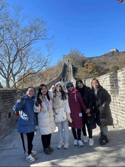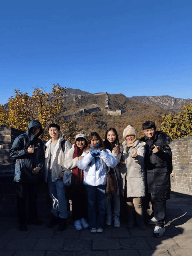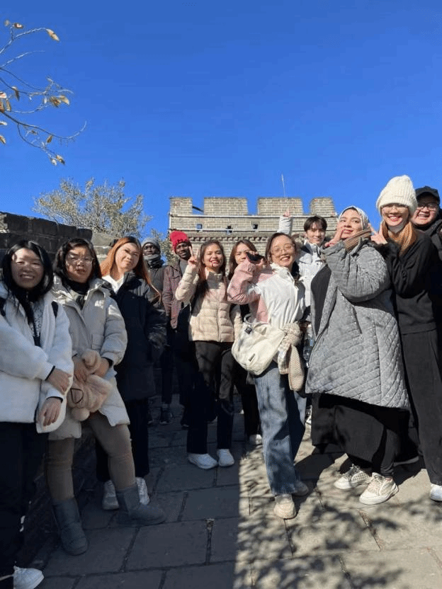 天空澄碧,纤云不染,秋天的长城色彩斑斓。“不到长城非好汉”的诗句激发了大家徒步攀爬的决心,各国学生携手向前,互相鼓励,沿着蜿蜒曲折的长城拾阶而上。所有同学都不禁惊叹于长城的磅礴与壮观,感受到中国人民的智慧、艰苦奋斗和坚韧不拔的精神。