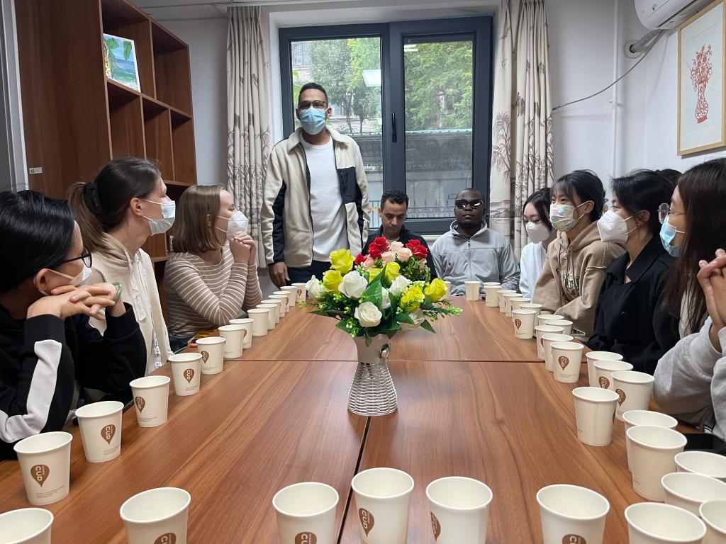 交流会上,张碘老师希望同学们通过交流,增进了解和友谊,使大学生活更加丰富多彩收获满满。丁国英老师向新同学简要介绍了中财的发展史,希望同学们珍惜大学时光,在疫情之下,调整好心态,安排好学习生活,积极参加文化体验活动,更多地了解中国文化,多方面培养自己的能力。来自布隆迪的国经贸19级本科生倪永博,来自叙利亚的金融19级博士生巴夏,来自越南的财经新闻21级硕士生阮氏清微,一年级新生乔治、叶问、苏家明等分享了自己的学习生活感受。