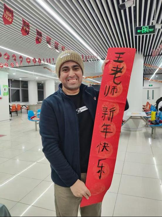 1月29日,同学们来到学校食堂同中国学生和学校老师们一同体验中国春节。大家一起包饺子,写福字,国际学生们手捧着自己的作品,脸上洋溢着幸福的笑容,