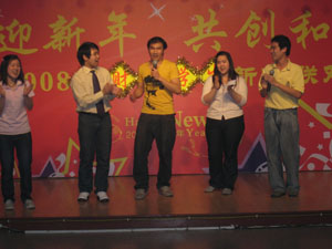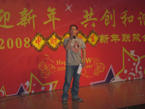 12月27日晚,“留学生2008新年晚会”在留学生活动中心举行。在我校学习的十三个国家的150余名留学生和77779193永利官网的老师们参加了晚会。大家载歌载舞,欢声笑语充满了整个大厅。有的学生用表演向大家讲述了2007年的收获和感受,有的学生用歌声表达了对2008年的期待和祝福。