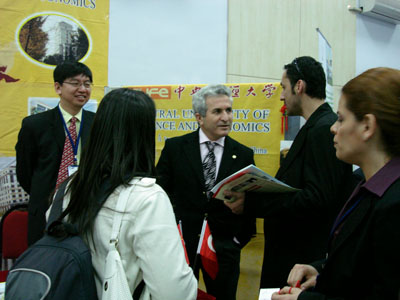代表团访问了土耳其著名的海峡大学、BILKENT等大学,并于2008年3月15日——16日参加了土耳其国际教育展。土耳其国家教育部外事总司司长易卜拉辛先生、我国驻伊斯坦布尔总领事张志良先生出席了中国展区开幕式并走访了各参展高校。这是中国高校首次赴土耳其举办高等教育展。展台前吸引了很多土耳其学生、公司职员,他们对中国文化和经济兴趣浓厚。