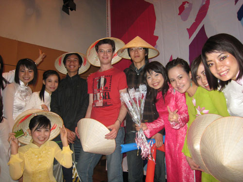 在近日举行的“北京市高校中外魅力之星小语种歌曲大赛“中,我校2005级本科国经贸班越南留学生范玉庆荣获三等奖。比赛中,我校的十名越南留学生还表演了风情浓郁的越南民族舞蹈《斗笠舞》,受到了大家的欢迎。