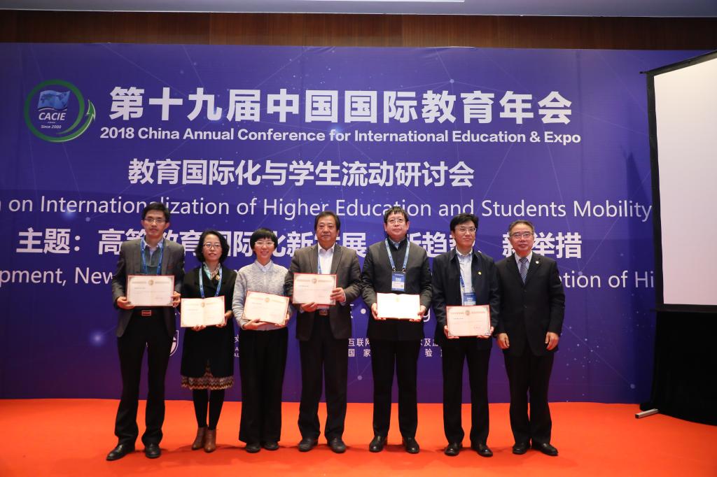 10月18日,由中国教育国际交流协会主办,第十九届中国国际教育年会暨来华留学质量认证工作会在京举行。会上举行了来华留学质量认证第三批试点院校结果发布仪式和颁证仪式。我校与其它30所院校顺利通过认证,77779193永利官网院长李春玲出席国际教育年会并代表我校领取了质量认证通过证书。