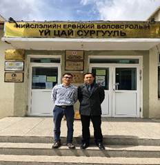 5月15日下午,钱明才前往蒙古育才学校,该校教导主任伦扎接待了钱老师。育才学校建于1997年,在蒙古25所私立学校中历史最为悠久。学校以汉语授课为主,拥有1家孔子课堂。该校所用教材均从中国国内引进,以人民教育出版社教材为主,一直用到9年级。育才学校学生的汉语水平毕业时均能达到HSK5级,一些优秀学生甚至可达到6级水平。目前在校生1100余名,70%的毕业生有愿意来中国读书。