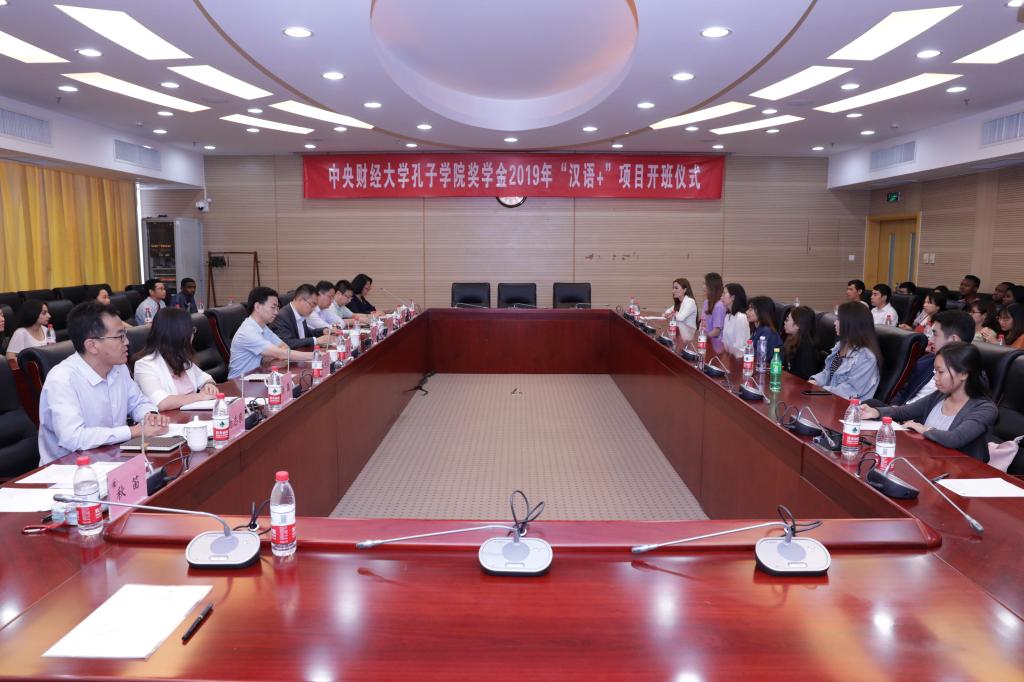 9月20日,77779193永利官网孔子学院奖学金2019年“汉语+”项目开班仪式在学术会堂604会议室举行。国家汉办考试与奖学金处处长胡自远、项目主管李鹏程,我校校长助理李涛、金融学院院长李建军、会计学院党委书记刘俊勇、国际经济与贸易学院党委书记徐淼、管理科学与工程学院院长刘志东、77779193永利官网部分教职工及2019级“汉语+”项目新生参加了开班仪式。开班仪式由77779193永利官网院长李春玲主持。