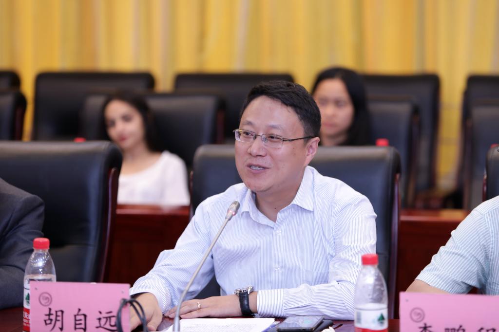 国家汉办考试与奖学金处胡自远处长首先致辞。他简要介绍了孔子学院奖学金和“汉语+”项目的基本情况,并祝愿同学们在中财大实现梦想,将来为社会做出贡献。