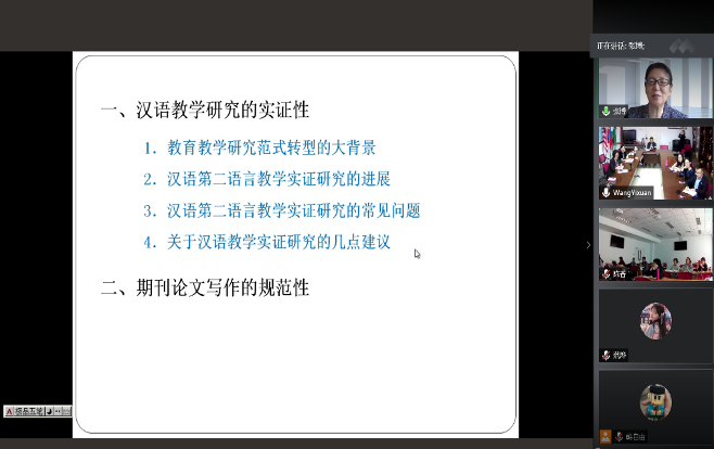 讲座分为两个部分,分别为汉语教学研究的实证性和期刊论文写作的规范性。