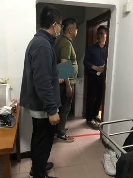 在座谈会进行的同时,保卫部部长、保卫处处长郑朝阳带领验收工作小组成员对学生宿舍、学院办公场所等点位进行了实地走访检查,了解学院网格化安全管理情况。