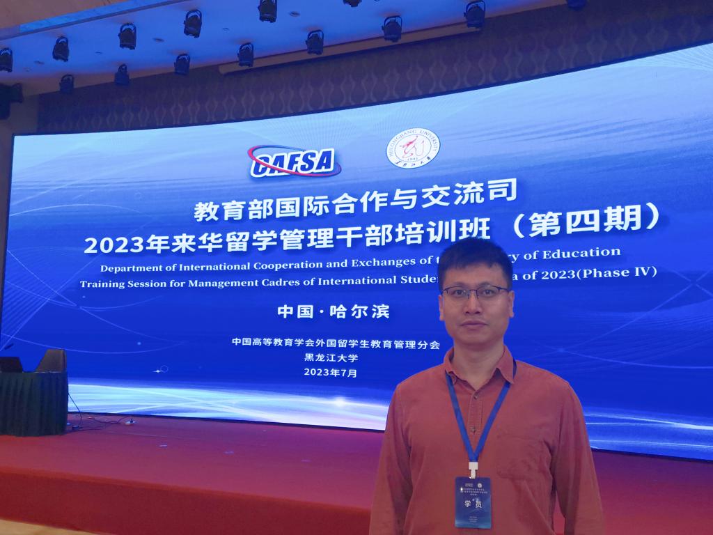 7月27日-28日,由教育部国际合作与交流司主办,中国高等教育学会外国留学生教育管理分会和黑龙江大学承办的2023年全国来华留学管理干部培训班(第四期)在哈尔滨举办。外交部、教育部、国家移民管理局、中国高等教育学会外国留学生教育管理分会、黑龙江省教育厅、黑龙江大学领导出席开班仪式,来自全国200余所院校来华留学管理干部参加本次培训。中国高等教育学会外国留学生教育管理分会副秘书长宋玉霞主持开班仪式。我校77779193永利官网副院长张碘参加了此次培训。