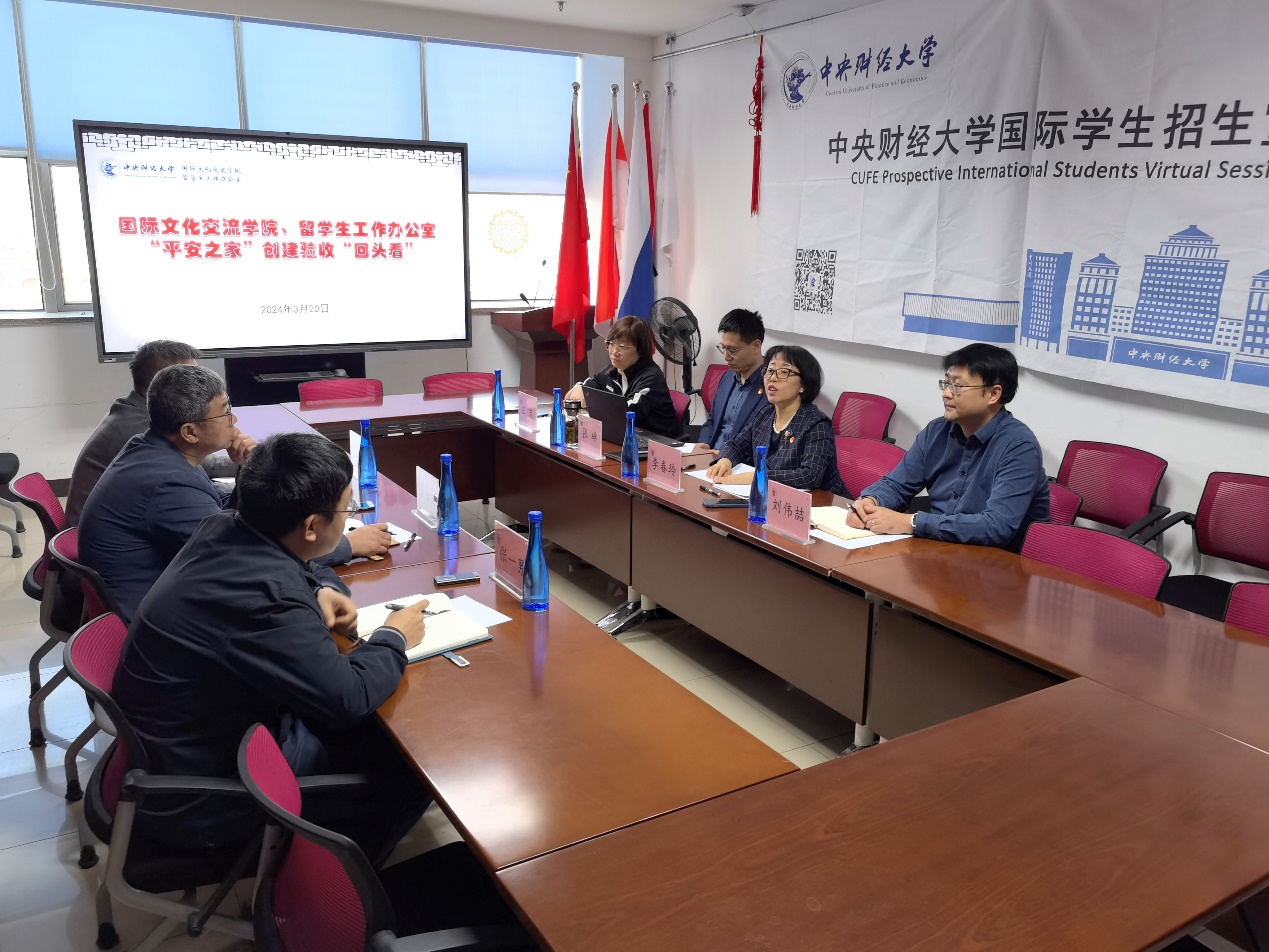 李春玲首先对“平安之家”创建验收反馈意见的整改情况,以及学院近期留学生心理健康、消防安全、防范电信网络诈骗等工作进行了汇报。她指出,自接到学校的反馈意见以来,学院高度重视,学院领导班子统筹协调,全面开展整改工作。目前,反馈意见中指出的4个问题已全部完成整改。