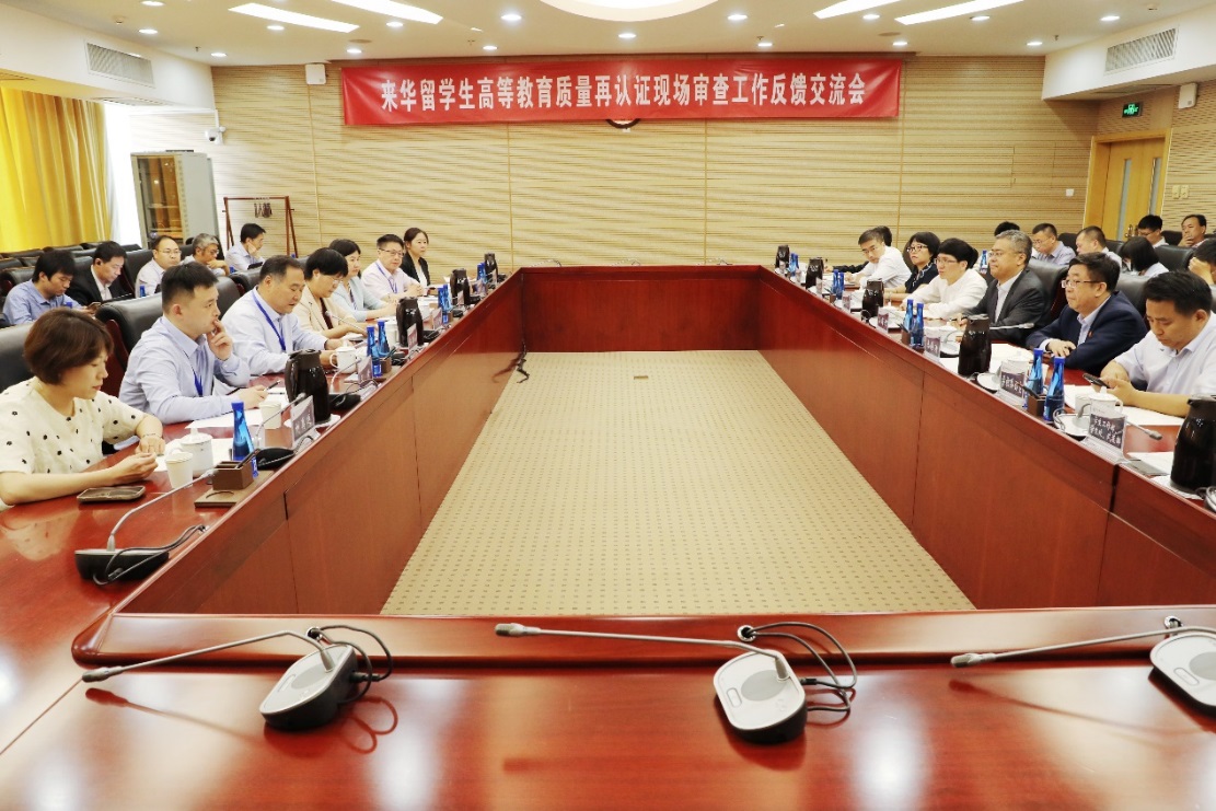 6月6日至7日,中国教育国际交流协会(以下简称“交流协会”)对学校开展来华留学生高等教育质量再认证现场审查。交流协会秘书长杨军,认证专家组组长秦尚海,组员李梅花、郭伏良、王琦,交流协会审查员别晓竹、卢春玲、刘禹廷来校进行现场审查。学校党委书记吴国生,校长马海涛,校党委常委、宣传部部长雷洪峰,校长助理陈斌开,相关职能部门和留学生培养单位主要负责人等参加了相关活动。