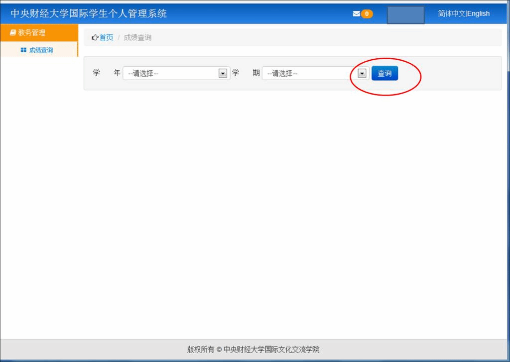 点击“成绩查询”右边页面变成如如下图3所示。可直接点击查询,看到所有的成绩、已获学分、学分加权平均分和绩点。也可选择学期(如2014-2015学年第2学期)查询。