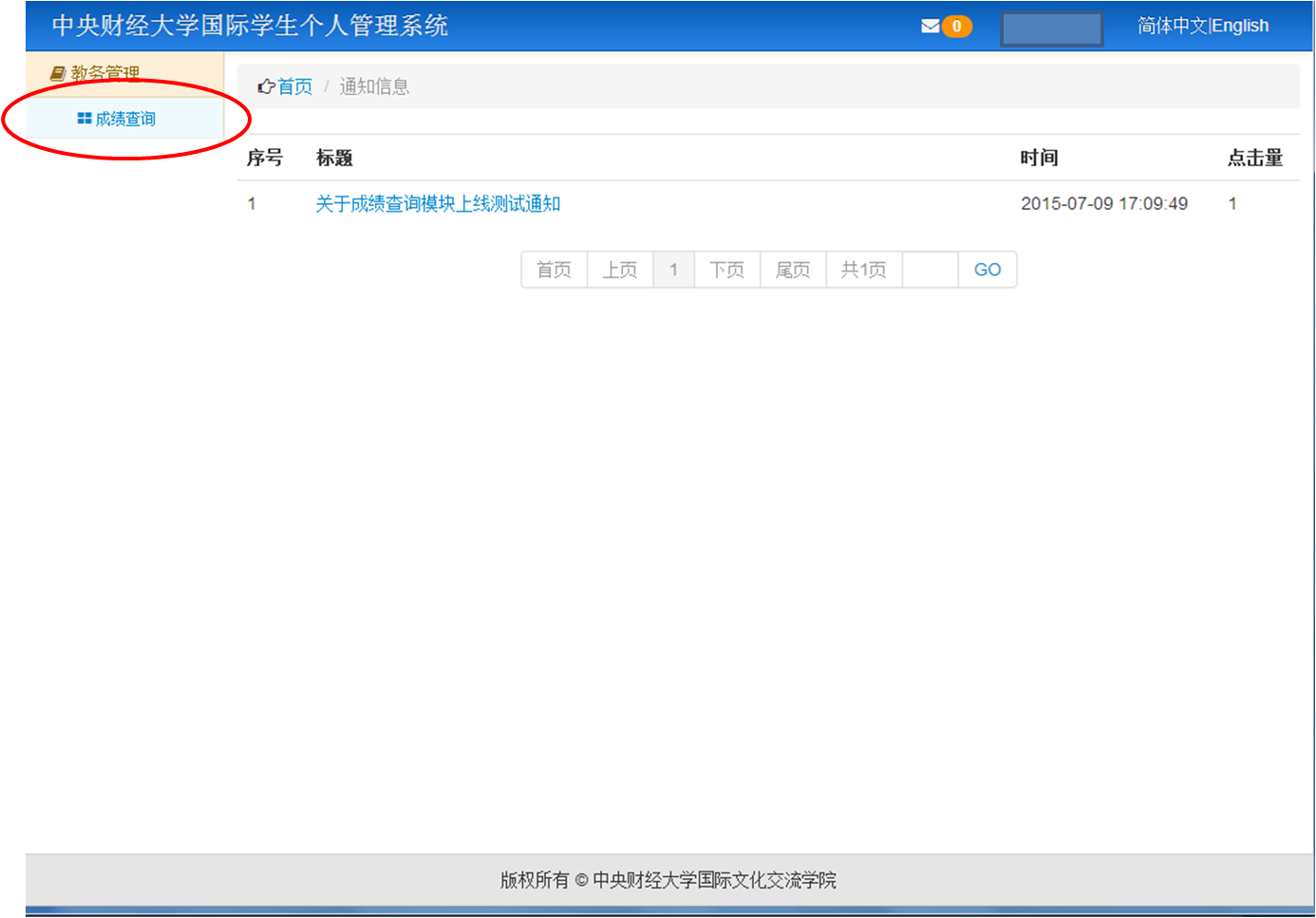 就可看到下拉菜单“成绩查询”(如下图2)。