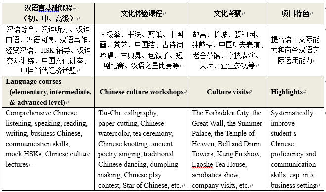 1.汉语研修课程内容 Program Information