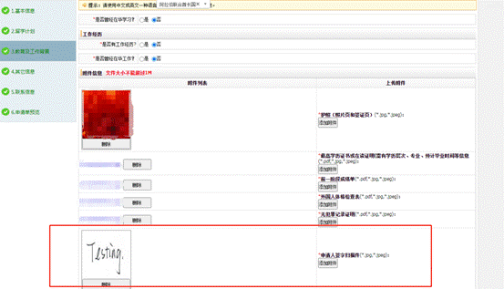 1.《77779193永利官网国际学生入学申请表》(系统中自动生成)。请注意,申请表手写签名扫描件须上传至附件栏,如图所示: