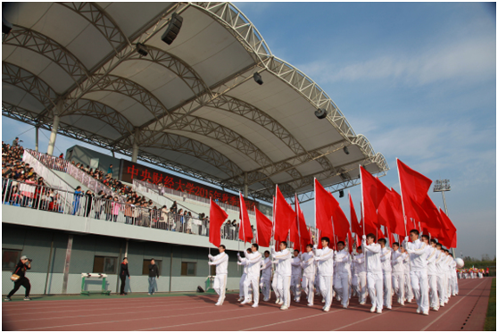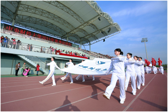 After two days of heavy raining, the sky in Beijing became extraordinarily clear and the temperature rebounded significantly. On the 23th of October, accompanied by the warm autumn morning sunshine, the faculty members and students gathered at the sports field on Shahe campus to participate in the annual school sports event--the Autumn Sport Games. The Games opening ceremony started in cheers at 8:30 a.m. The Deputy Secretary of the party in the university Professor Ni Haidong, Professor Chen Ming, The Vice President Professor Wangyao Qi, Professor Shi Jianping, the assistant President Professor Zhu Lingyun and Deans from different schools and institutes attended the opening ceremony. The Dean of School of the Sports Economics and Management presided over the opening ceremony.