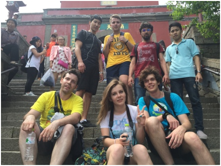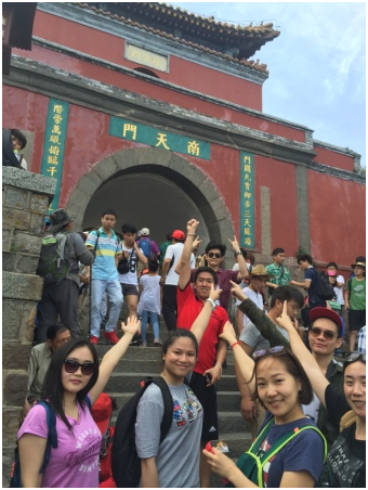 The majesty of the Mount Taishan and difficulties encountered during the climbing have given a deep impression on the international students. After reaching Nantianmen and Yuhuangding, the students were lost in the wonderful scenery of the small hills. During the climbing, many students again experienced what is called "Persevering."