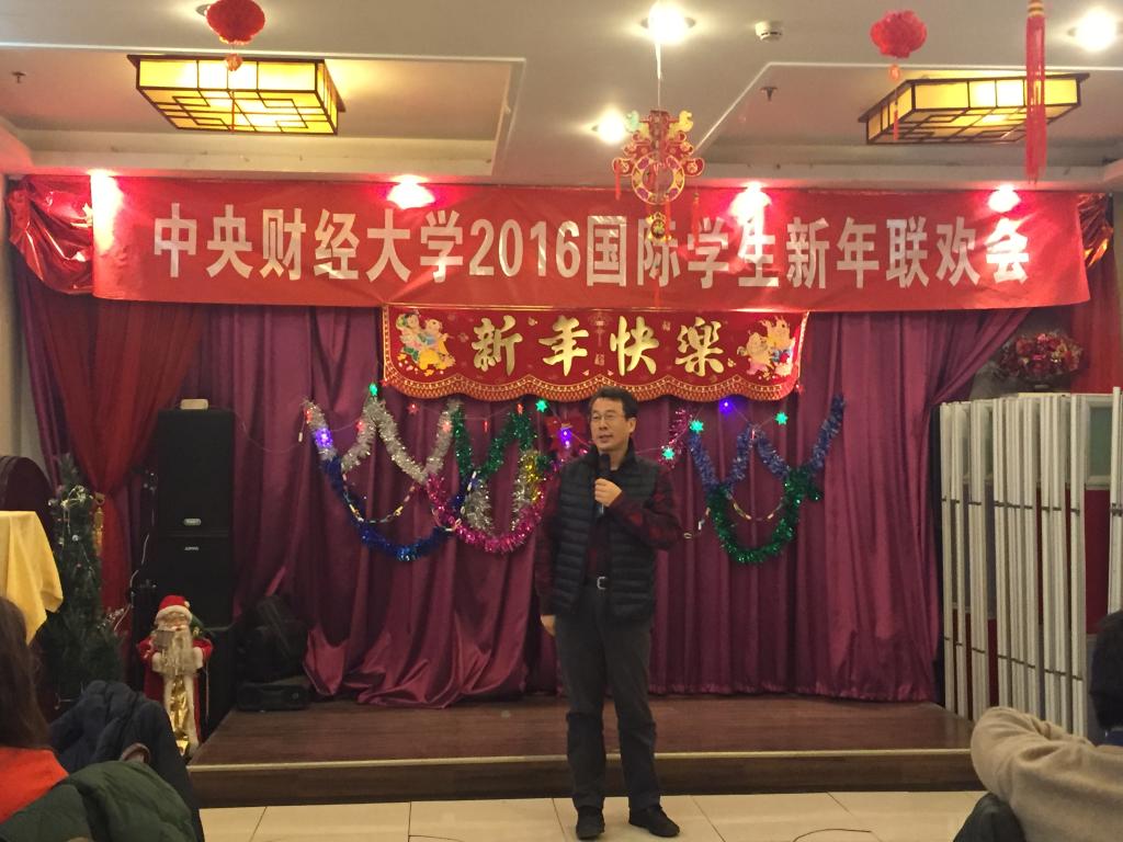 Vice President, Dr LI Jun-sheng attended the party, and delivered a warm New Year's greeting. He gave his New year's warm regards to international students and their family members; and then congratulated on their achievements in study and other performance in the past year. He also expressed his gratitude to all kinds of support to CUFE's internationalization from the governments and society and thanks to faculty members and staff in internationalization of teaching,research, management and living support. Furthermore, he encouraged our international students to continue to study hard and achieve more in the new year by sharing his own experience of oversea study, work and life in combination with his experience of training PhD international students.