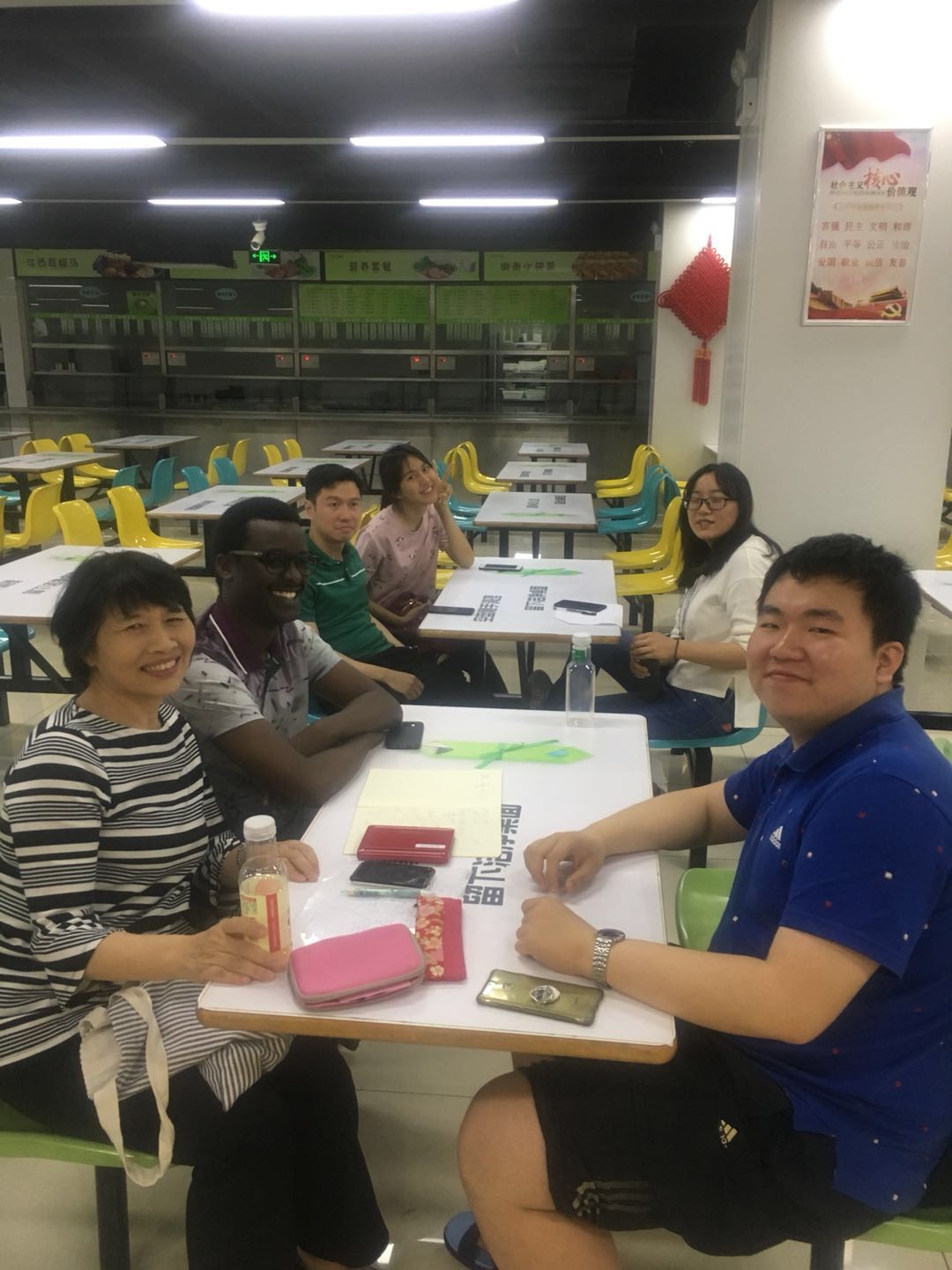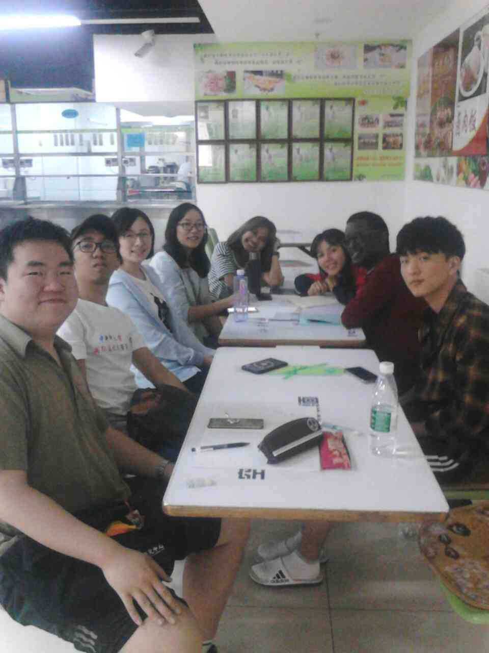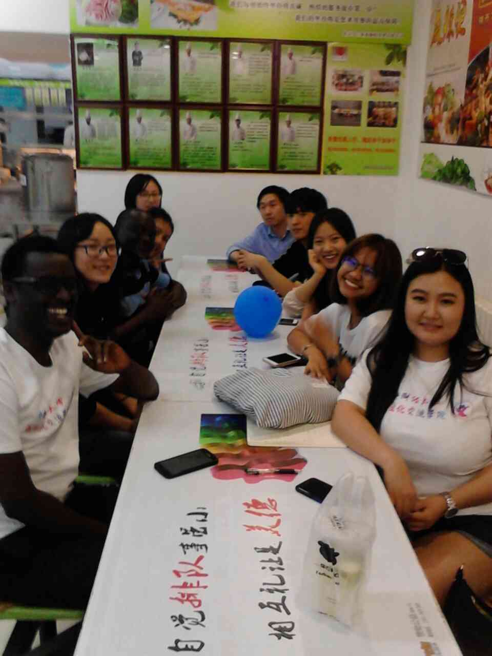 Chinese corner was held in the Muslim canteen of the southern campus of our university. International students at CUFE are from more than 10 countries, including Vietnam, Japan, Rwanda, Korea,Laos, Mongolia and Thailand. All of them were involved in the activities. From the beginning, Chinese teachers were also involved, encouraging students to speak Chinese. Although all of the students were just sitting around a small table, it seemed like they were travelling around the world together,understanding different cultures, but communicating together in one language.