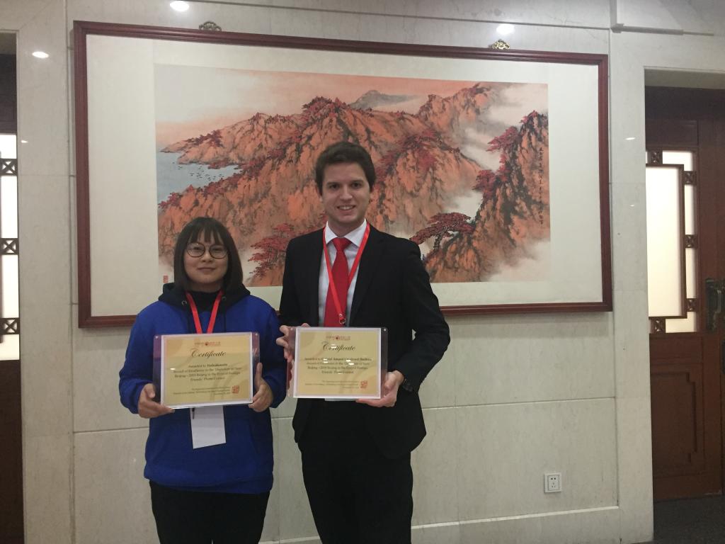 On 14th December, “Depicting the New Beijing” ——2018 Beijing in the Eyes of Foreign Friends Photo Contest Award Ceremony and the Exchange for Foreign Friends in Beijing was held in the Beijing People’s Association for Friendship with Foreign Countries. Among 3,000 photos taken by photographers from 60 countries, the photos of Brazilian and Myanmar students from our university, GABRIEL AMARAL CAVALCANTI BECHARA and YIN LEA LEA SEIN won the “Award of Excellence” and the “Award of Popularity”. Besides, 7 international students won the “Award of Top 300 Winners”, and our university won the “Award of Best Organization”.