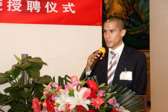 校友大使代表穆雷发表了受聘感言。他用一口流利的中文说道,能够受聘为首批海外校友大使,自己感到非常高兴和荣幸,也感到责任重大。在中财大的几年学习生涯中,自己不仅收获了知识,体验了中国文化,还收获了老师和同学们的温情和爱心。他表示,无论身在何处,自己都是骄傲的中财人,一定会铭记老师们的教诲,用实际行动为母校发展贡献自己的力量,并祝母校蒸蒸日上,前程辉煌。