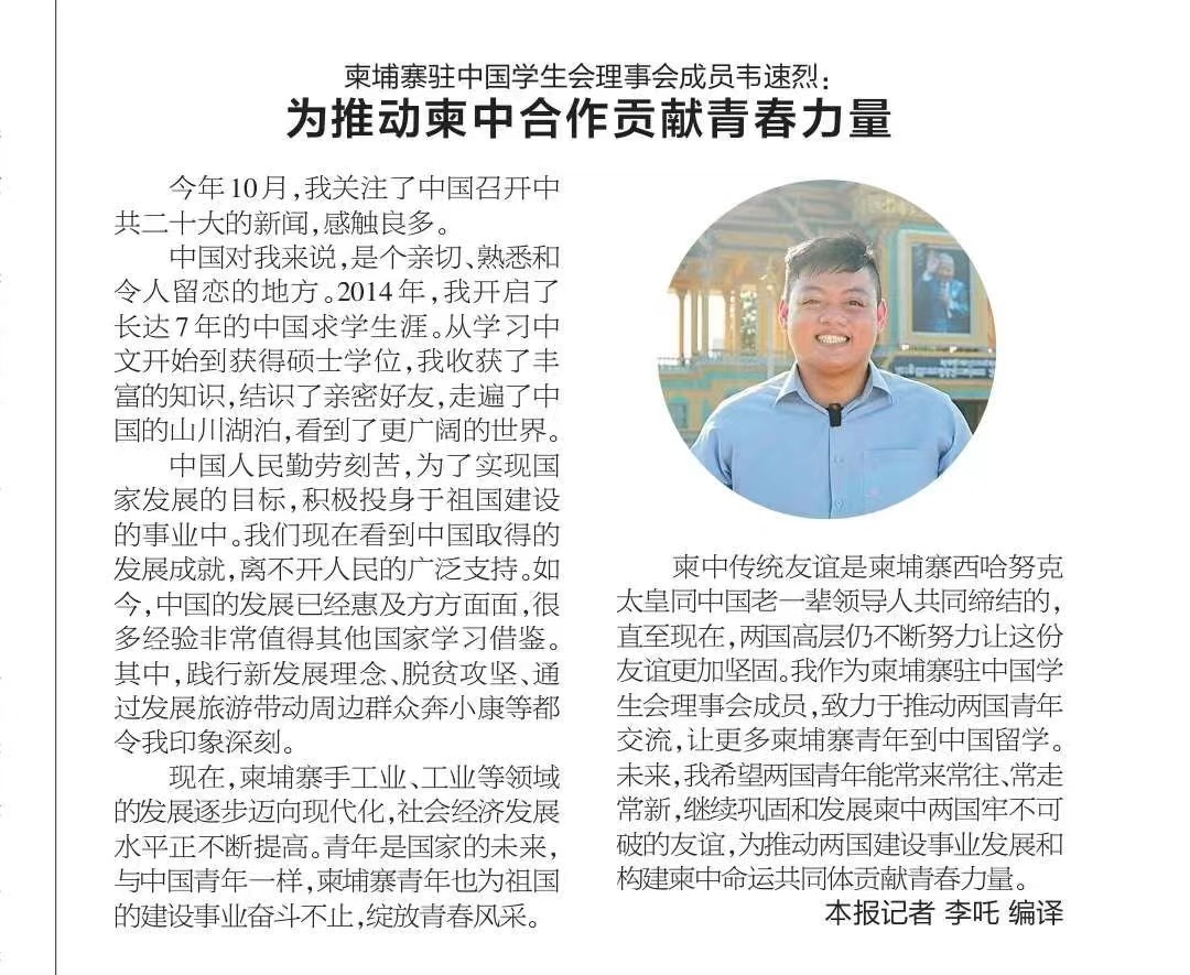 柬埔寨驻中国学生会理事会成员韦速烈:为推动柬中合作贡献青春力量