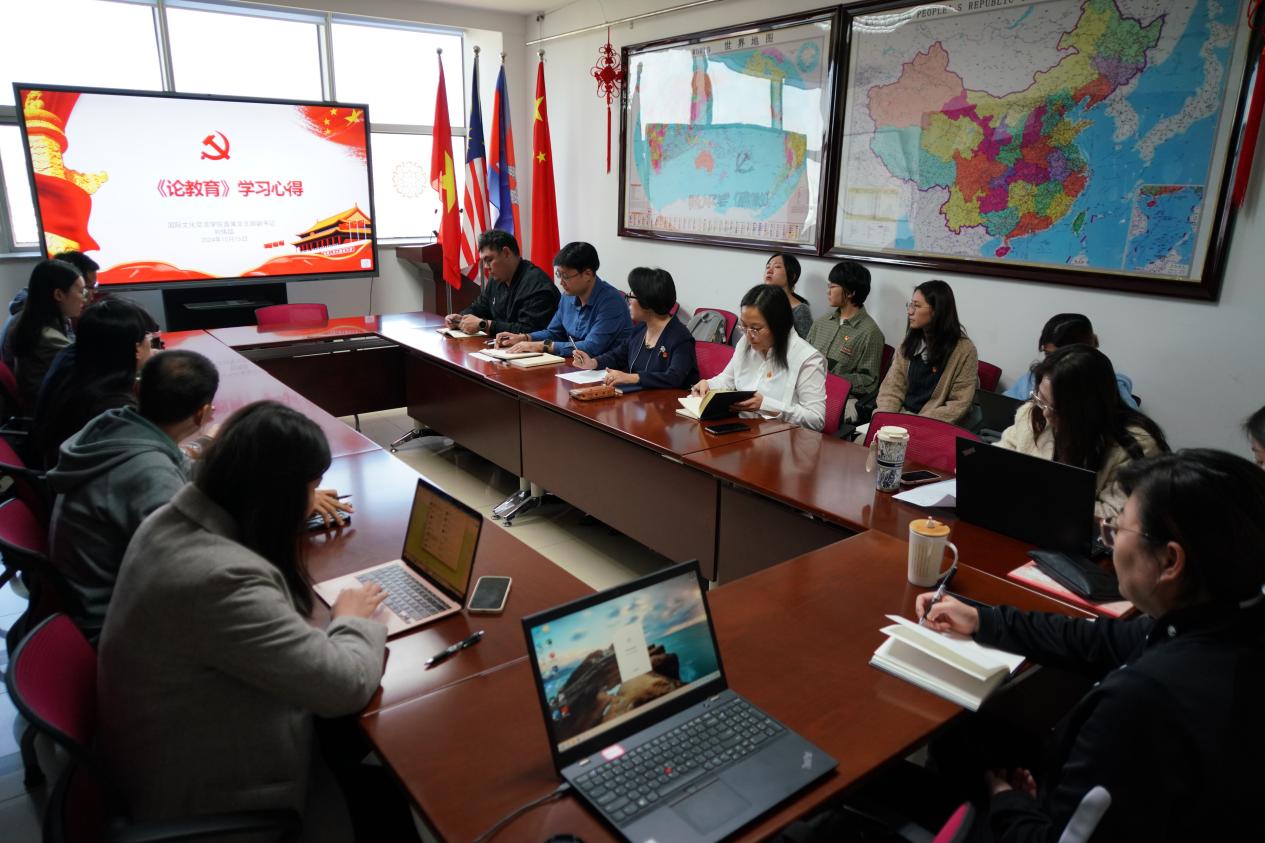 李春玲指出,习近平同志《论教育》,科学回答了“培养什么人、怎样培养人、为谁培养人”的根本问题,深刻回答了新时代新征程为什么要建设教育强国、建设什么样的教育强国、怎样建设教育强国等一系列重大问题,为建设教育强国指明了前进方向、提供了根本遵循。学院全体教职工要认真学习习近平总书记的重要论述,牢牢把握教育的政治属性、人民属性、战略属性,为学校来华留学教育事业贡献自己的力量。